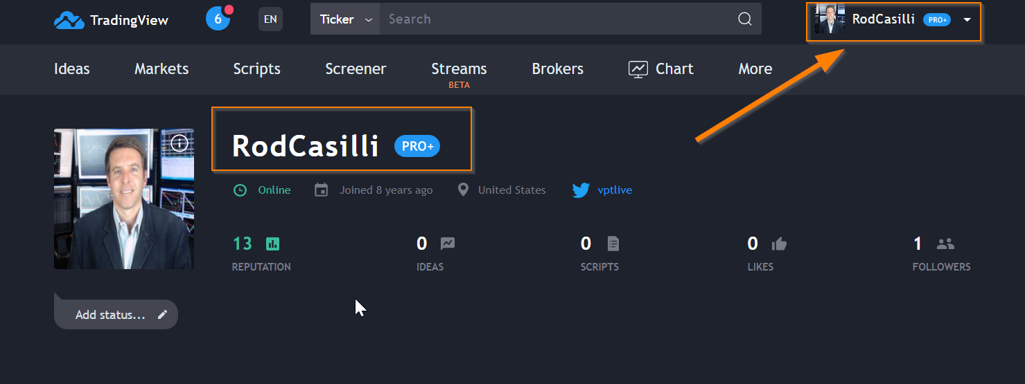 Note that TradingView user names are case sensitive. So the user name below is RodCasilli, not rod casilli or Rodcasilli or rodcasilli. You get the idea. Please enter your user name in the form exactly as it appears on your TradingView account. Thanks!